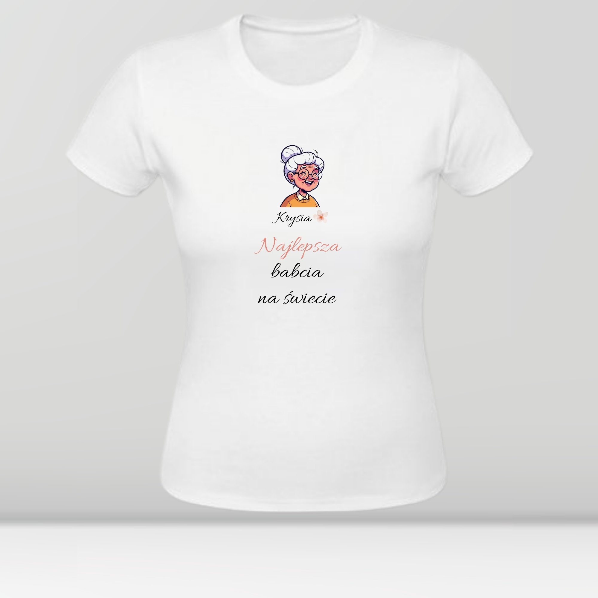 Starannie wykonany nadruk, estetyczna typografia oraz lekka, oddychająca tkanina tworzą harmonijne połączenie wygody i elegancji. Koszulka doskonale sprawdzi się jako prezent na Dzień Babci, urodziny, święta lub po prostu jako miły gest pełen miłości.