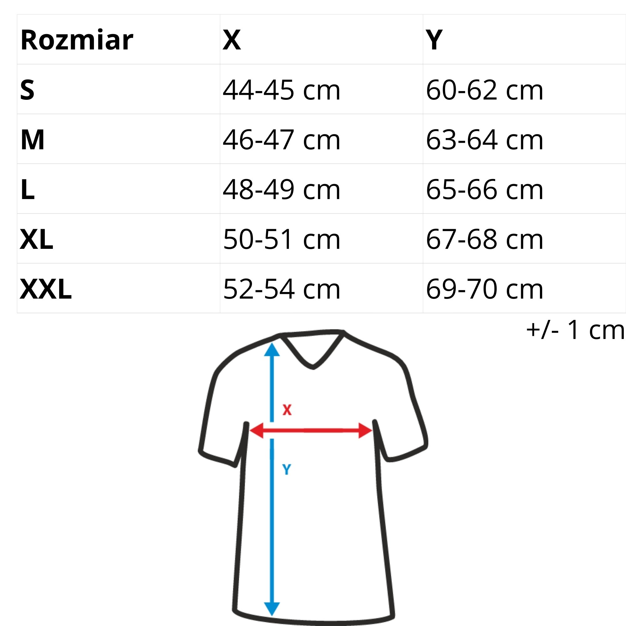 Koszulka została wykonana w technologii dwuwarstwowej – wewnętrzna warstwa z miękkiej bawełny zapewnia komfort noszenia i delikatność dla skóry, natomiast zewnętrzna warstwa z poliestru odpowiada za trwałość nadruku oraz lepsze odprowadzanie wilgoci. Takie połączenie materiałów pomaga utrzymać optymalną temperaturę i wygodę przez cały dzień.