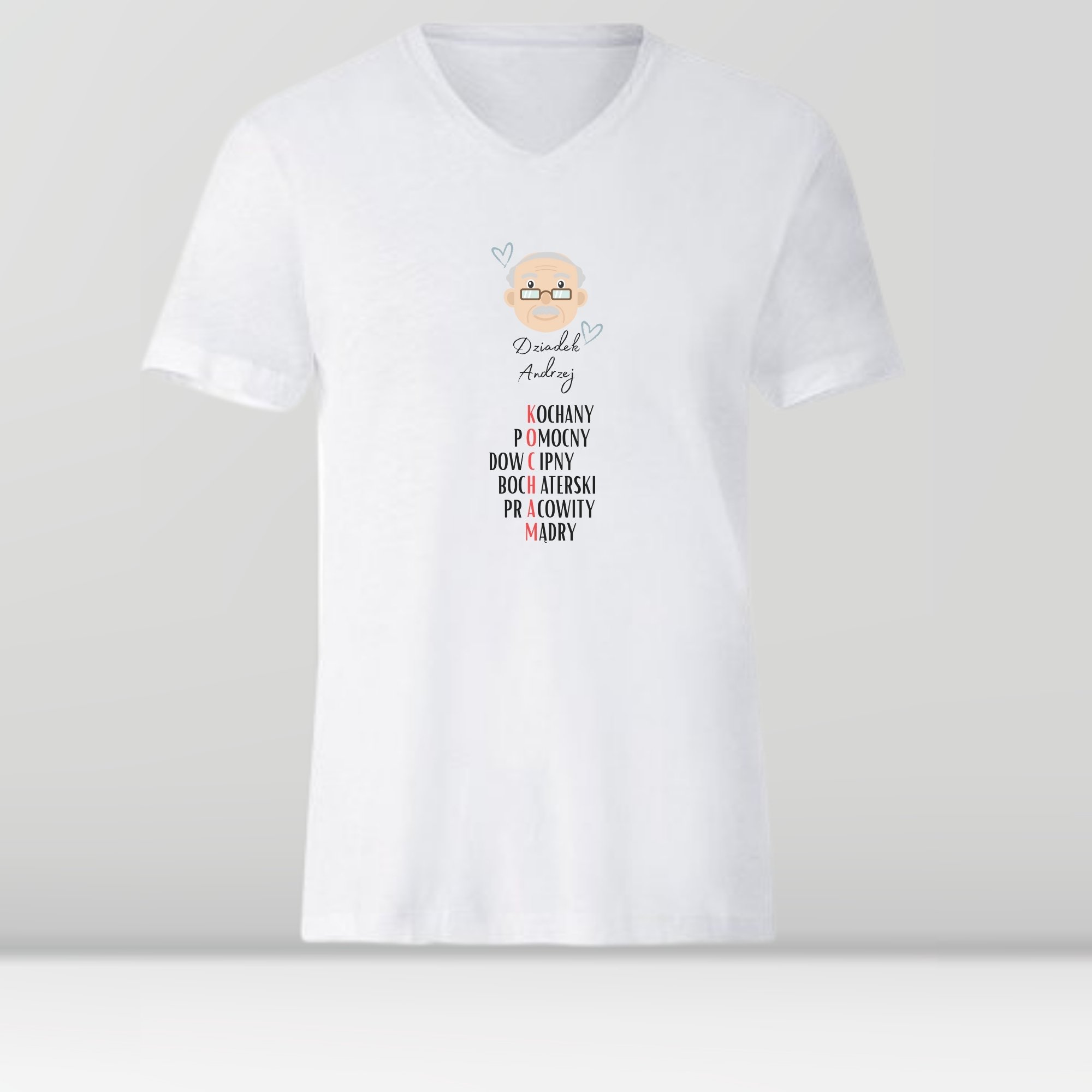 Dwuwarstwowa, sportowa koszulka „Dziadek Andrzej” to wyjątkowe połączenie humoru, personalizacji i codziennego komfortu. Minimalistyczna ilustracja Dziadka z serduszkami oraz akrostych opisujący jego cechy („Kochany, Pomocny, Dowcipny, Bohaterski, Pracowity, Mądry”) sprawiają, że koszulka jest nie tylko ubraniem, ale też pięknym wyrazem uczuć.